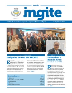 Instituto de Graduados en Ingeniería e Ingenieros Técnicos de España nº 38 | Julio de 2024 Boletín En este número... pág. Ì Editorial pág. 3 Ì Asamblea anual de INGITE pág. 10 Ì Certificación pág. 16 Ì Europa pág. 17 Ì Actualidad Colegios pág. 18 A C T U A L I D A D Insignias de Oro del INGITE E l INGITE ha otorgado las In- signias de Oro, máxima dis- tinción de esta institución, a Miguel Ángel González Pérez y a Juan Ignacio Larraz Plo, en un acto celebrado el pasado mes de abril, después de la celebración de la Asamblea General del INGITE. Al homenaje asistieron toda la Junta de Gobierno de la entidad y repre- sentantes de las distintas ramas de la ingeniería técnica, así como amigos y familiares. Desde INGITE queremos felicitar a los dos por tan merecido galardón ¡Enhora- buena! pág. 14 E N T R E V I S T A Entrevista a Ramón Grau Presidente de la UITIE R amón Grau Lanau es el presidente de la UAITIE (Unión de Asociaciones de Ingenieros Técnicos Industriales y Graduados en Ingeniería de la rama Industrial de España). En esta entrevista nos cuenta todas las actividades promovidas por esta entidad que trabaja para mantener el liderazgo del asociacionismo en la Ingeniería. Vocaciones STEM , la Puerta del Ingenio , la exposición Mujeres ingenieras de éxito , son algunos los proyectos más destaca- dos.. pág. 4
